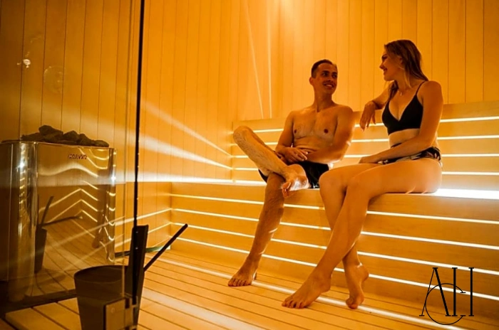 La sauna è una piccola stanza progettata per produrre un calore elevato, spesso con vapore o aria secca, che fa sudare il corpo. Aiuta a rilassare i muscoli, a migliorare la circolazione e a rilasciare le tossine attraverso la sudorazione.